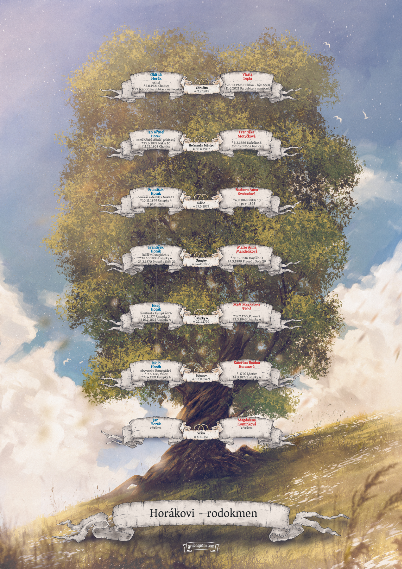 Ukázka přímé linie - rodokmenu pro 7 generací